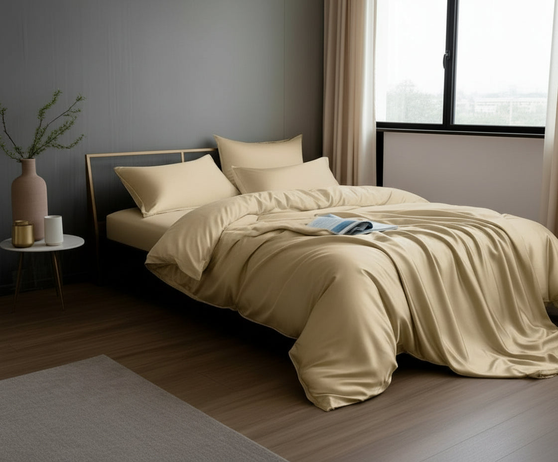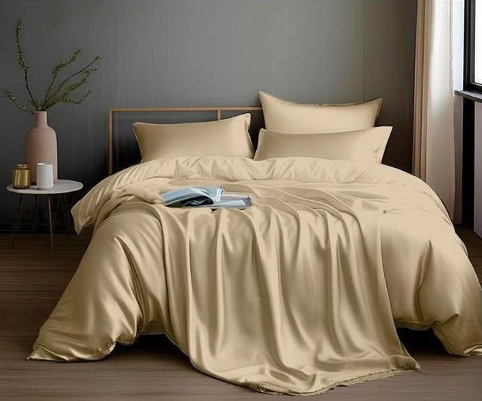 Champagne Serenity brings a soft, elegant champagne tone to your bedroom. Made from 100% 400TC satin-weave cotton, it offers a smooth, luxurious feel with a rich hotel-style finish.