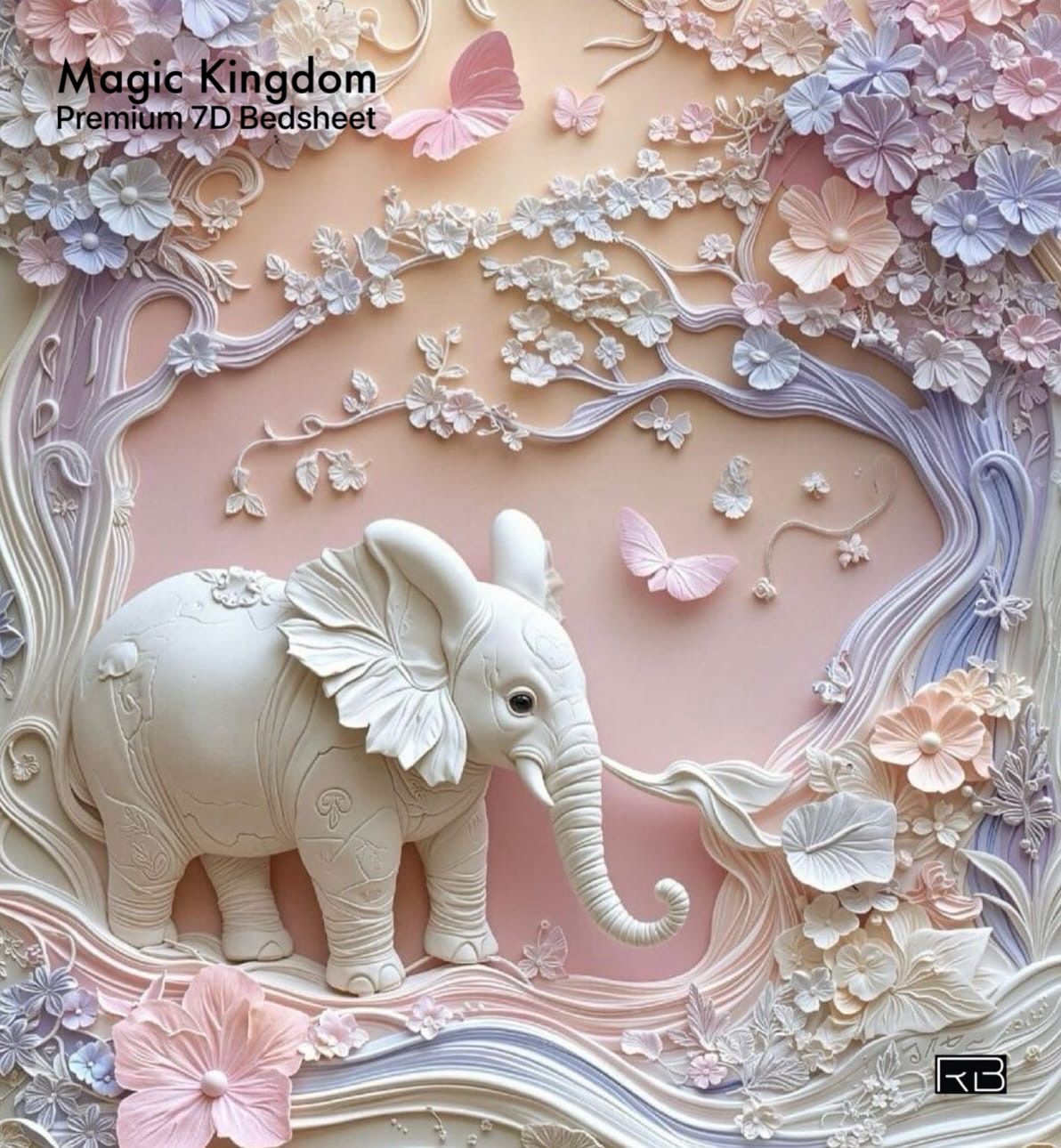 Apke bedroom ko ek magical aur elegant touch dene ke liye laaye hain Elephant Blossom Premium 7D Bedsheet 🐘🌸