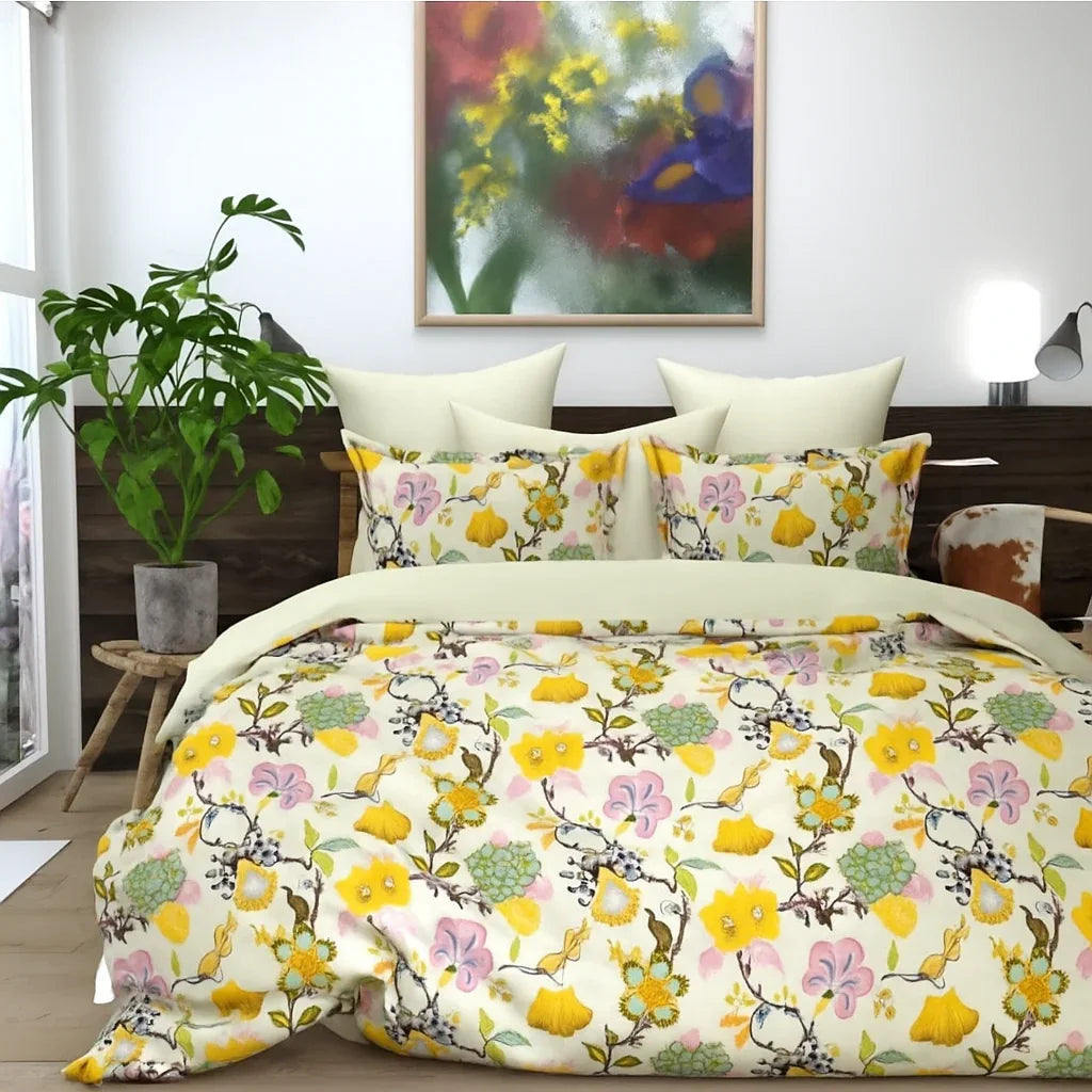 Floral Symphony Bedsheet Set – Yellow Bloom Edition Set includes 1 double bedsheet + 2 pillow covers