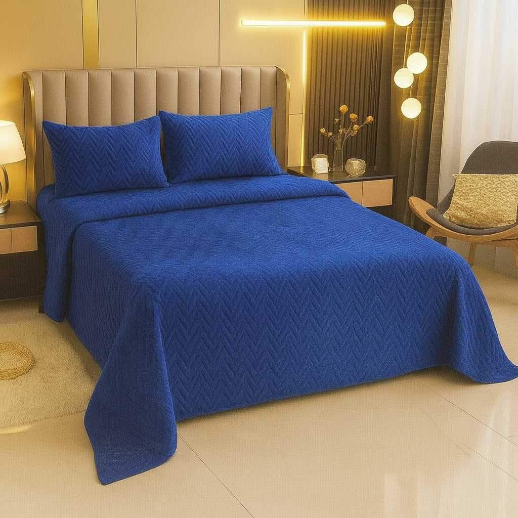 A soothing, super cozy 4-piece bedding set with a reversible embossed duvet cover, warm bedsheet, and matching pillow covers. The calming blue shade brings a fresh, relaxed, winter-ready feel to your space.